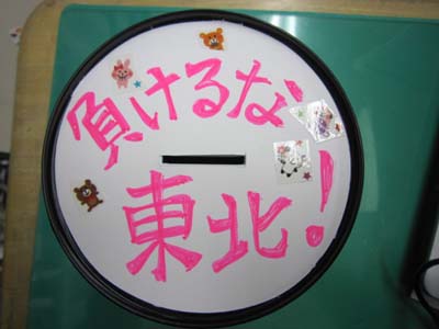 今日は子供をおんぶして、義援金を募っているお母さんがいて驚きました。