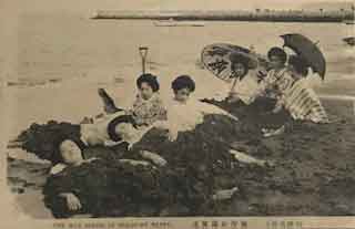 海辺で遊ぶ女性たち