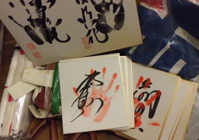 サイン手形や、本物の巨大なのぼり旗から