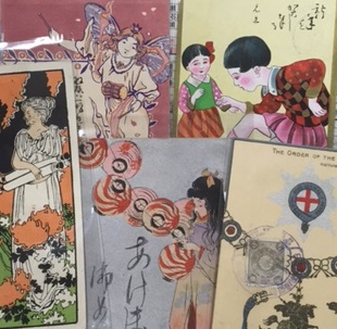 古い絵柄の絵葉書や