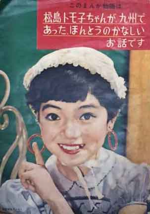 「このまんが物語りは 松島トモ子ちゃんが、九州であった、ほんとうのかなしいお話です」